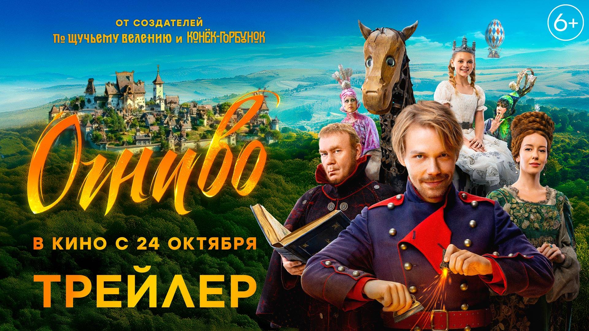 Представляем трейлер семейного приключенческого блокбастера «Огниво». Во всех кинотеатрах с 24 октября. Чего только в сказочном царстве не сыщется! Только самого царя нет — и царица вдруг памяти лишилась. Но веселый и хитрый Ваня и в такой ситуации не теряется — ему море по колено. Обвести любого вокруг пальца – запросто! Притвориться солдатом — куда проще! Но однажды в поисках удачи он находит… огниво! Старинную зажигалку, по-нашему. А оттуда вдруг царевна Даша появляется и о помощи просит. И сражаться Ване придется не только за царевну Дашу, но и за правду, надежду и любовь. Ваню и его лошадку по имени Куда-надо ждут опасные приключения, битвы, засады и коварный враг. И наш герой принимает бой! А то, кто ж всех спасать будет, если Иван не впряжется! В главных ролях: Роман Евдокимов, Антонина Бойко, Ирина Старшенбаум, Виталий Хаев, Михаил Трухин, Ян Цапник, Юрий Кузнецов, Ирина Горбачева. Режиссер — Александр Войтинский.