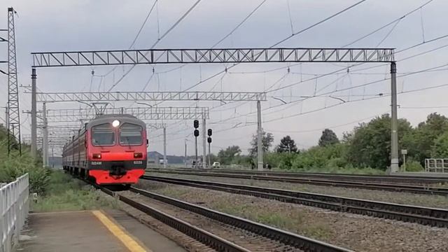 Электропоезд ЭД4М-0220 с пригородным поездом №6016 Миасс-1 — Челябинск-Главный в 6-ти вагонной составности прибывает на 1-й путь Ст. Смолино, г. Челябинск, Челябинская обл., ЮУЖД Дата: 07.06.2022