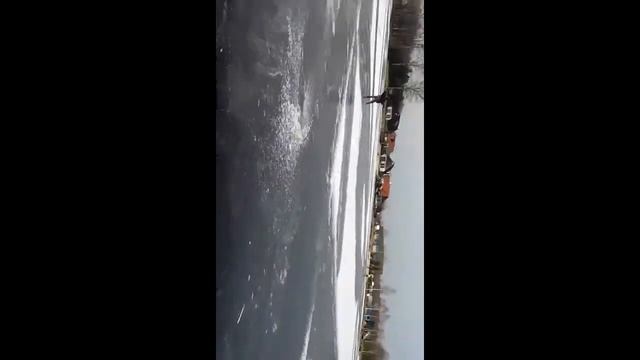snowboard at the wakeboard park on a frozen lake