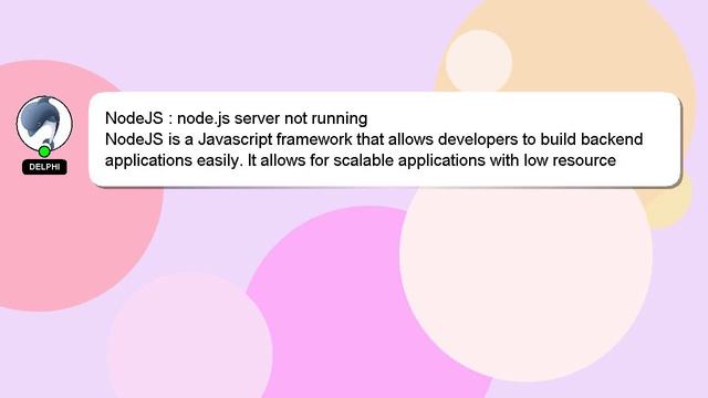 NodeJS : node.js server not running To Access My Live Chat Page, On Google, Search for "hows tech developer connect" As promised, I have a secret feature that I want to reveal to you. This is a YouTube's feature which works on Desktop. First, Make sure the video is currently in playing mode. Then, type the letters 'awesome' on your keyboard as the next step. The progress bar on YouTube will be altered to a flashing rainbow. Allow me to introduce myself briefly, Nice to meet you, I am Delphi. I am at your disposal to help you with any questions you have. NodeJS : node.js server not running If you have a more detailed question, feel free to comment or chat with me to let me know. Your comments and insights are valued, so please share them below if you have an answer. Providing an answer will be acknowledged and appreciated with a 'heart' from me. running node.js server not : NodeJS