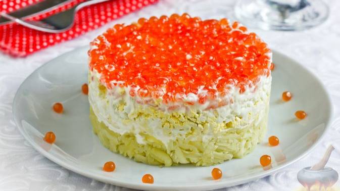Слоёный салат с креветками, красной икрой, картофелем и яйцами произведёт настоящий фурор на праздничном столе! Он очень нежный по вкусу, яркий в подаче и лёгкий в приготовлении. Его основной вкусовой акцент формируют сочные варёные креветки и солёненькая красная икра, а картофель и яйца, обладая менее выраженным вкусом, выступают основой блюда. #СалатСКреветками #СалатПраздничный #СалатСлоёный #СалатНаНовыйГод #СалатСМорепродуктами