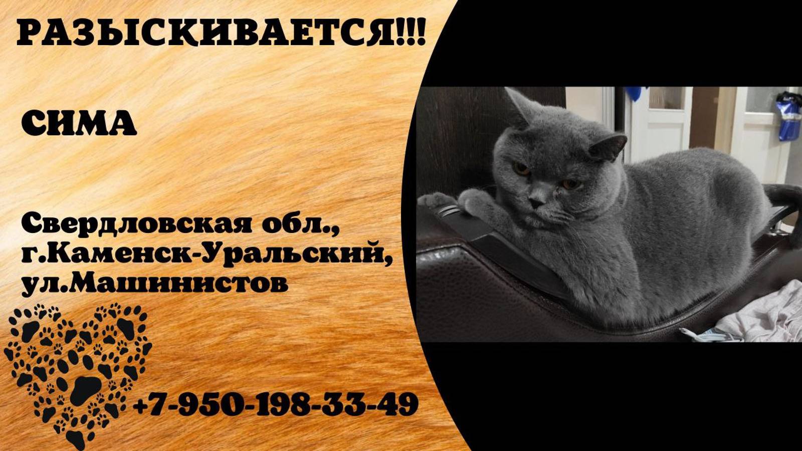 Пропала кошка! СИМА. Свердловская область, г.Каменск-Уральский.