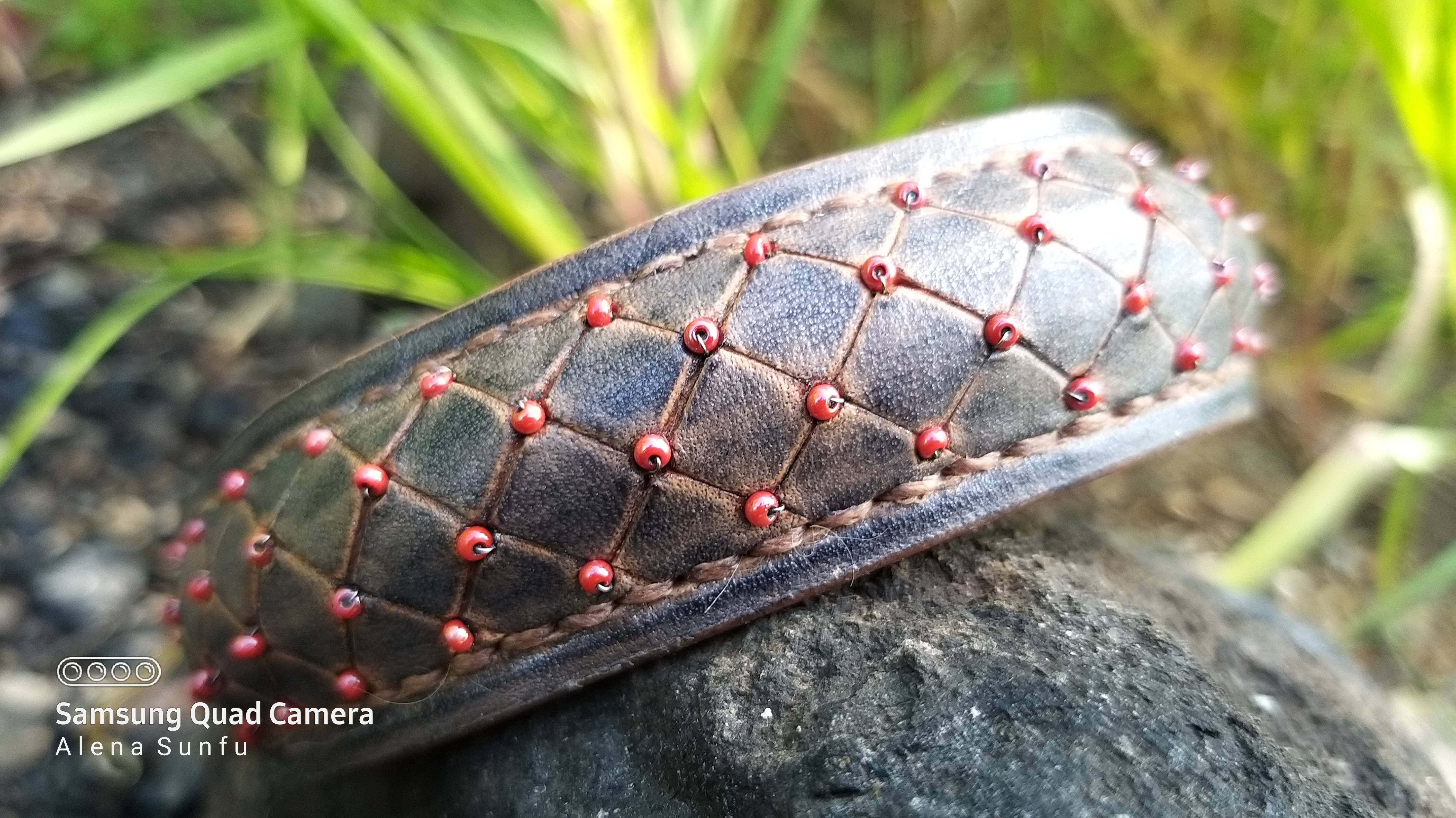 Кожаный браслет ручной работы с бисером.