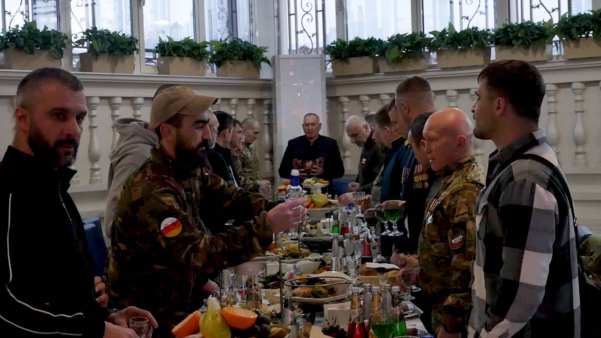 По инициативе двукратного олимпийского чемпиона, мецената Махарбека Хадарцева для десятков участников боевых действий было организовано застолье в ресторане «Коралл». С тремя пирогами старшие вознесли молитву Богу и всем святым, попросив оберегать тех, кто стоял и стоит на страже мира и безопасности нашей страны. Один из военнослужащих поздравил боевых товарищей стихотворением Александра Твардовского «Я убит подо Ржевом».