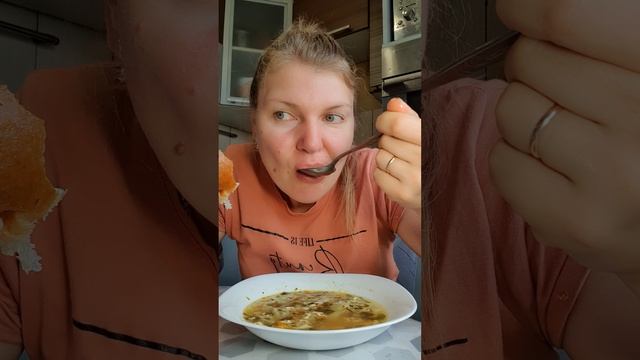 МУКБАНГ. Зеленый борщ с пампушками