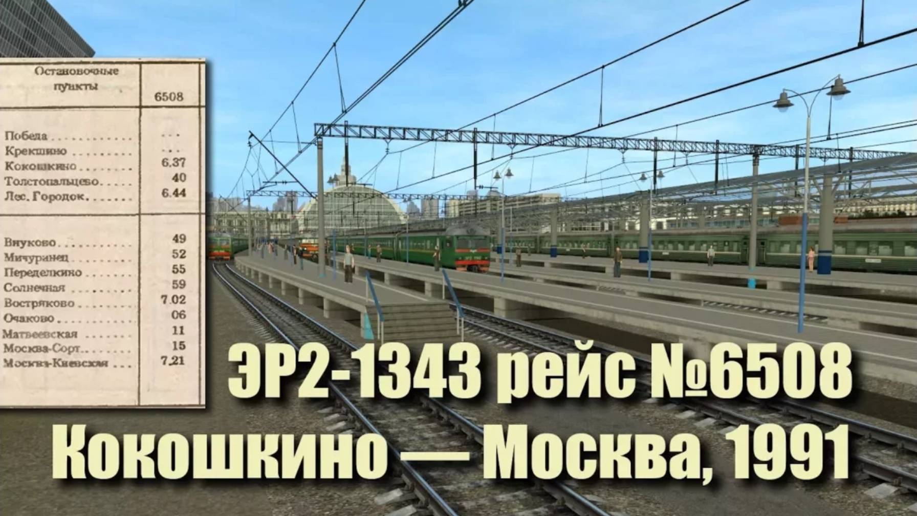 Trainz: ЭР2-1343 рейсом №6508 Кокошкино — Москва, 1991 год