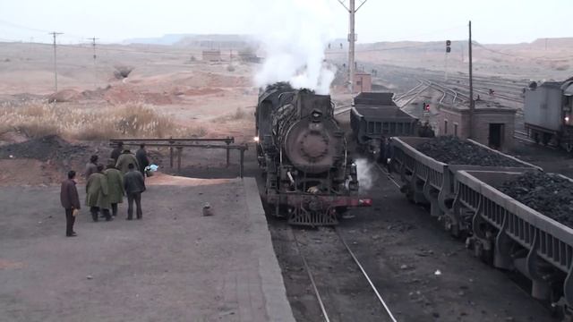 With 7 JS class 2-8-2s awaiting the crew's shift change (and an 8th behind the camera), JS8040 arrives at Xibolizhan with the morning box car passenger carrying the new day shift. Nowhere else in the world can you see 9 such impressive steam locomotives standing together in 2012.
