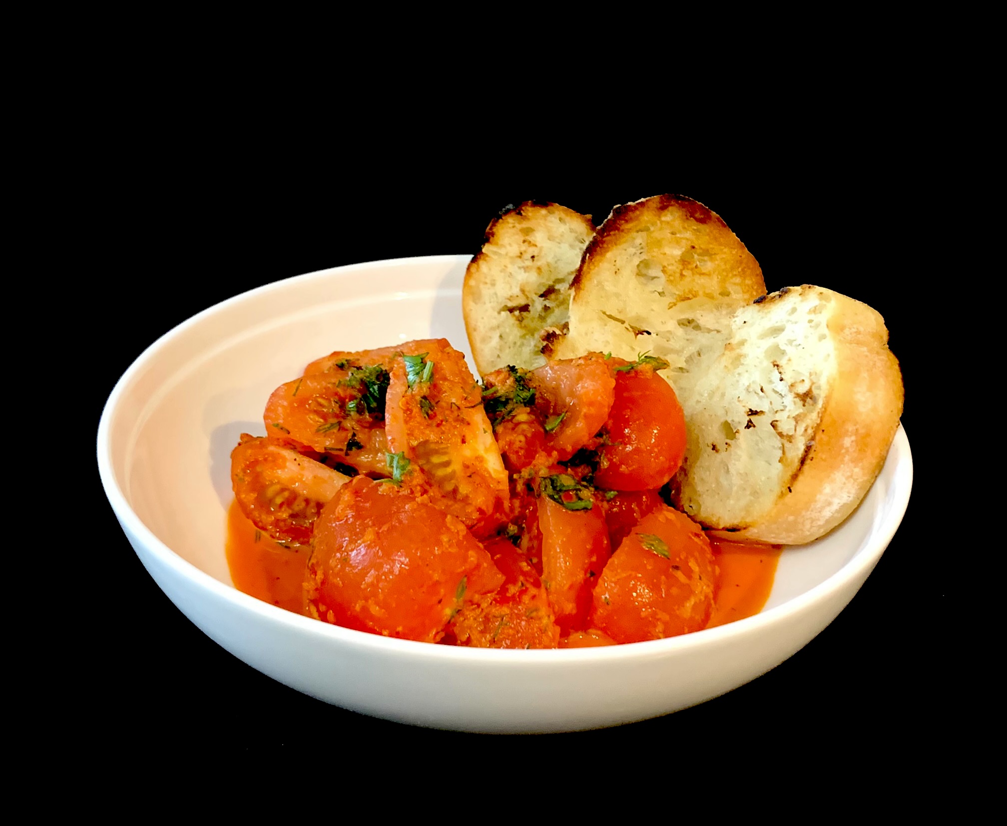 Вкусные помидоры зимой - реальность! Только надо добавить немного вкусов и ароматов, поколдовать, словом. Итак, начинаю волшебство! ✍️1 кг сливовидных помидоров обдаю кипятком и очищаю. Режу на четвертинки. Отдельно кладу в блендер сладкий перец, пару зубчиков чеснока, чайную ложку хлопьев сушёного перца чили, одну чайную ложку соли, 2 чайных ложки сахара, 2 столовых ложки яблочного уксуса, 2-3 столовых ложки оливкового масла, листья одной веточки мяты. Перебиваю блендером до однородной массы. Заливаю полученной смесью томаты, добавляю мелко нарезанные петрушку, кинзу и укроп, перемешиваю, накрываю и отправляю в холод на несколько часов промариноваться как следует. Подаю с поджаренным хлебом. Очень просто и очень вкусно! ?