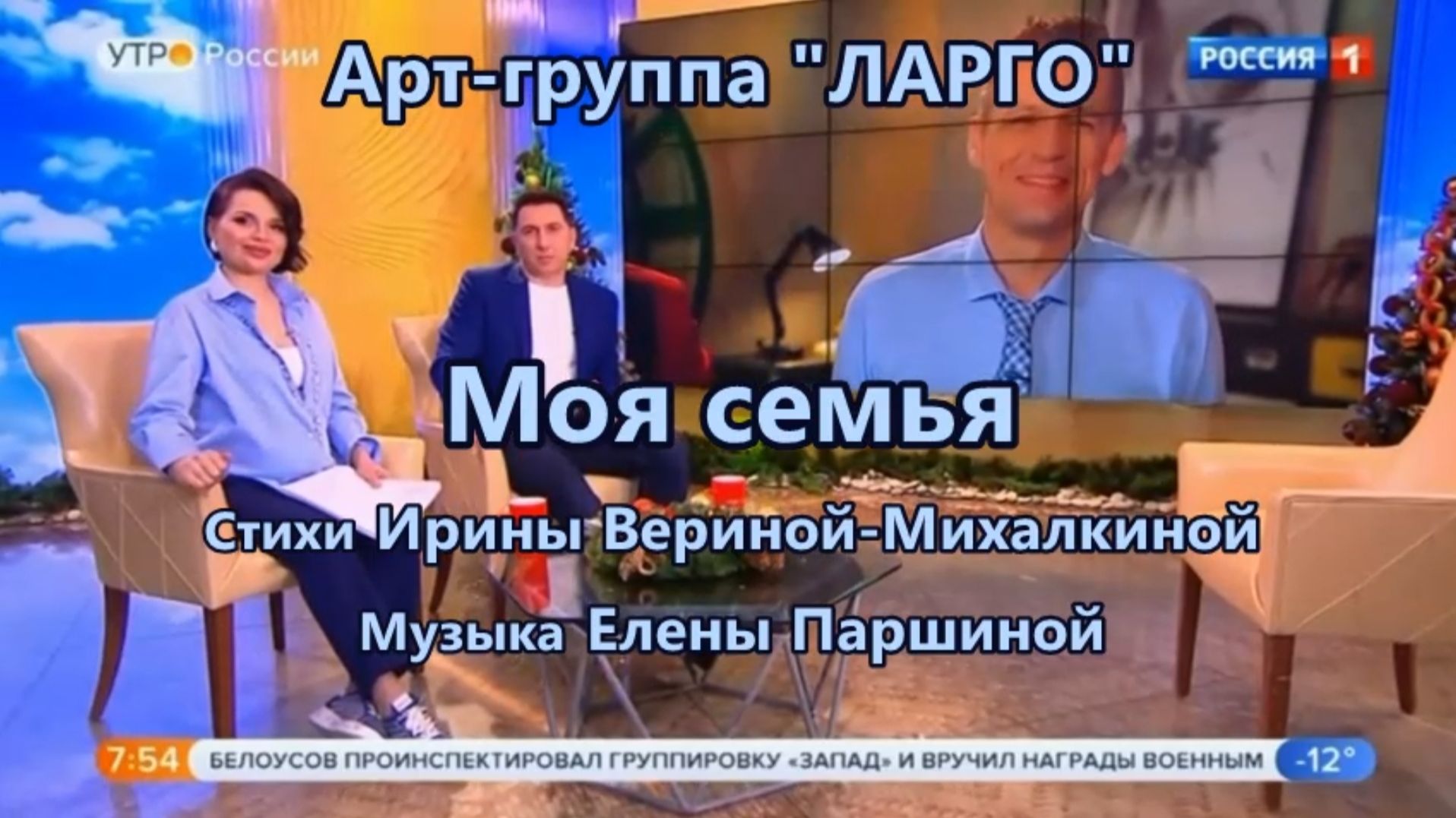 Участие Арт-группы Ларго на канале Россия-1 в эфире передачи Утро России "В гостях у Андрея Петрова" с песней Елены Паршиной на стихи Ирины Вериной-Михалкиной "Моя семья". 17.01.2026
