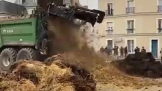 Акция с сеном и навозом перед ратушей Тура