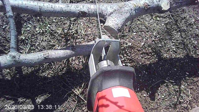 Работа в саду сабельной электропилой WOSAI