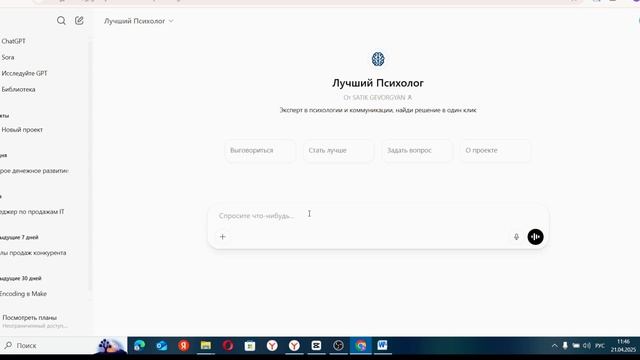 Создай себе персонального помощника в любом направлении и кайфуй от результатов! В этом видео покажу, как использовать ChatGPT максимально эффективно — в личной жизни, бизнесе и творчестве. Делюсь подборкой самых крутых промтов, которые откроют новые горизонты: АНАЛИЗ ОТНОШЕНИЙ ПО ПЕРЕПИСКЕ — пойми скрытые смыслы и эмоции ФИНАНСОВЫЙ ПУТЬ с помощью Таро — осознанно строй будущее УБЕДИ КОГО УГОДНО — искусство аргументации на уровне профи СЕМЕЙНЫЙ ПСИХОЛОГ — найди гармонию и понимание СТИЛИСТ — создай образ, который влюбляет с первого взгляда ДИЗАЙНЕР ИНТЕРЬЕРА — уют и стиль по твоим правилам УДАЛЕНИЕ ФОНА + КАРТОЧКИ ТОВАРОВ — идеальные фото за 1 клик ПРОЖАРКА как у стендап-комика — смешно и по делу КОНСУЛЬТАНТ ПО ПИТАНИЮ — ешь вкусно и правильно ПОДБОР КОСМЕТИКИ — идеальный уход и мейкап под тебя Хватит тратить время и деньги на десятки специалистов — ChatGPT даст тебе все и сразу. Включай видео, сохраняй промты и начни пользоваться ИИ по максимуму! Делись в комментариях, какие промты тебе понравились больше всего! Заказать автоматизацию можно через телеграмм https://t.me/danilkuril ТГ канал - https://web.telegram.org/k/#@AvtoMake ⏱️ Таймкоды: 00:00 – Вступление 00:30 – Финансовый путь (Таро-анализ) 02:55 – Семейный психолог 04:05 – Рассказ про промты 06:25 - Вывод #ChatGPT #Промты #ИскусственныйИнтеллект #Лайфхаки #Саморазвитие #AIПомощник #GPT4