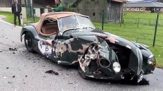 Женщина за рулем, глядя на свой телефон, врезалась в Jaguar XK120 1948 года выпуска.