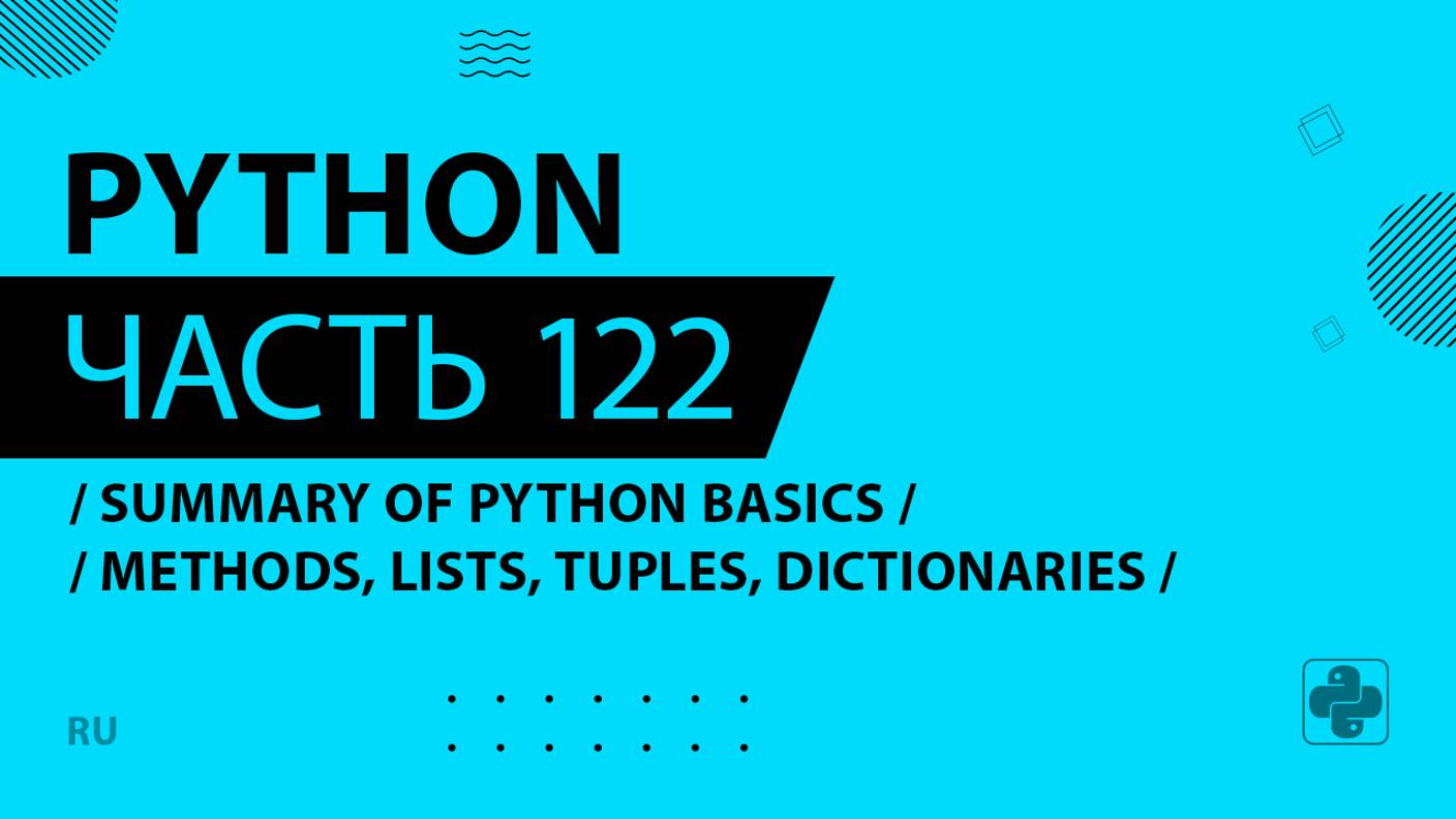 Python - 122 - Summary of Python Basics - Methods, Lists, Tuples, Dictionaries