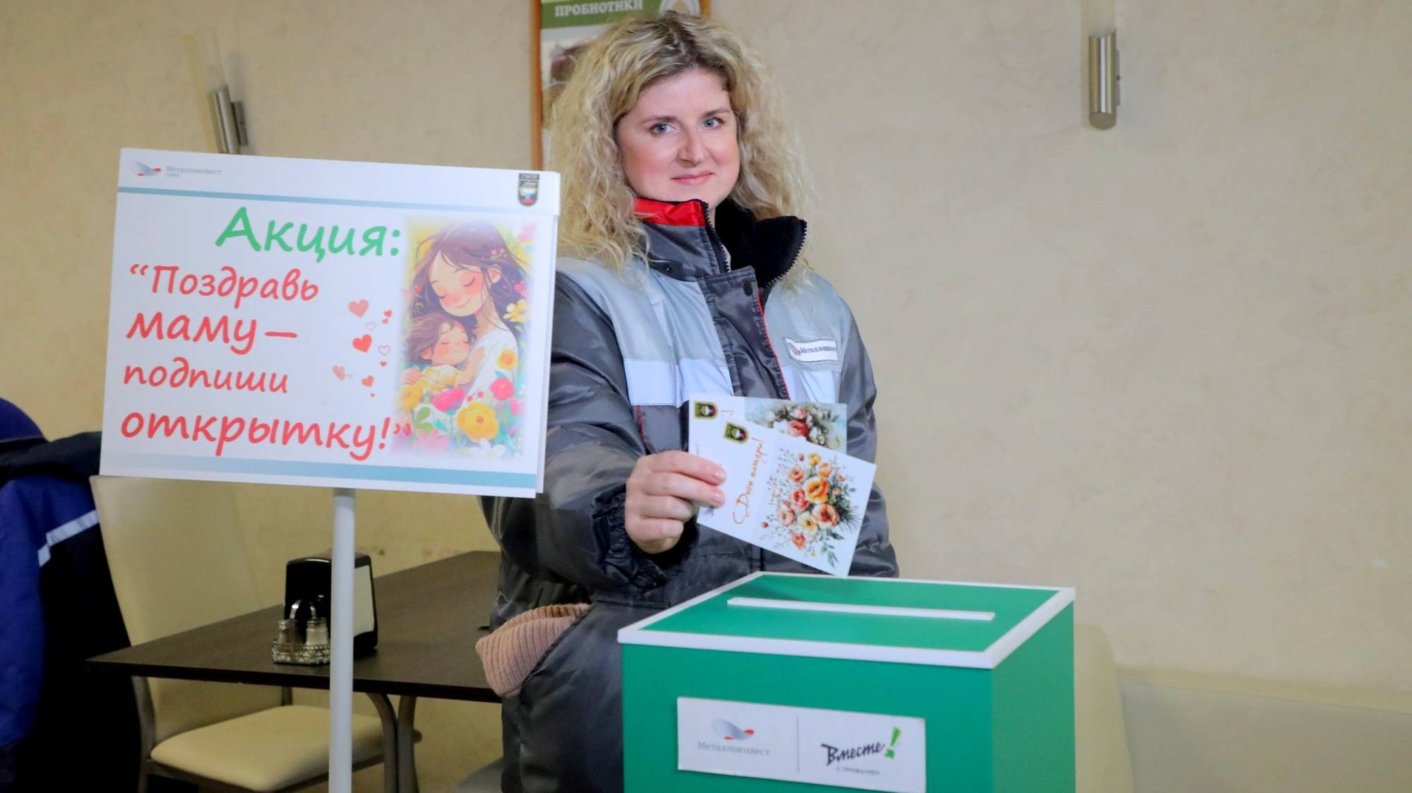 К приближающемуся Дню матери на ОЭМК решили провести необычную акцию: подготовили почтовые открытки с тематическими рисунками. Стойки с ними разместили в столовых предприятия. Сотрудники комбината и дочерних компаний могли подписать карточку своим близким и опустить в ящик. Все заботы и затраты по отправке взял на себя ОЭМК.