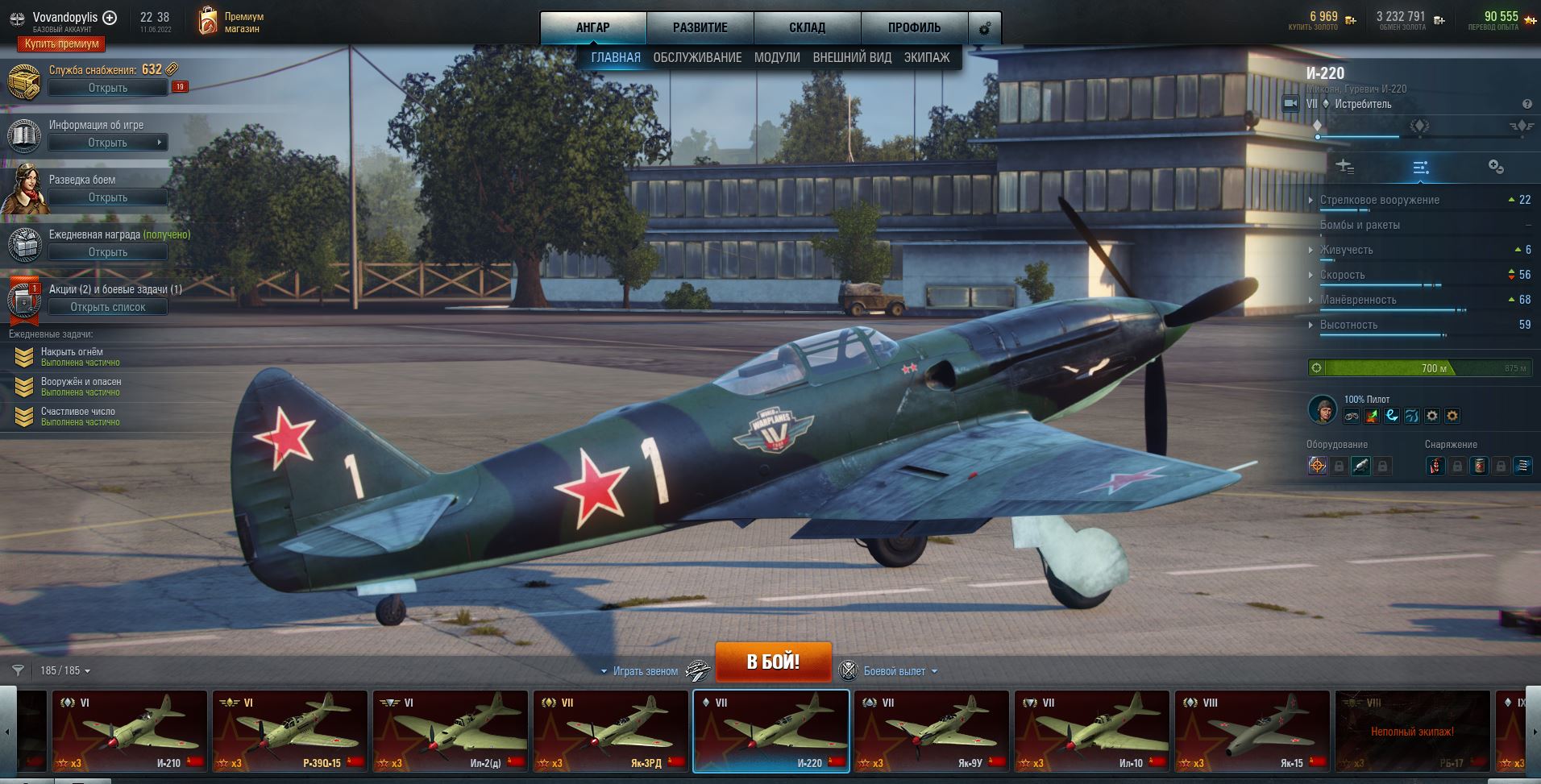 World of Warplanes, советский самолет Микоян, Гуревич И-220, 1-й, победа, 11 фрагов, медаль Акамацу