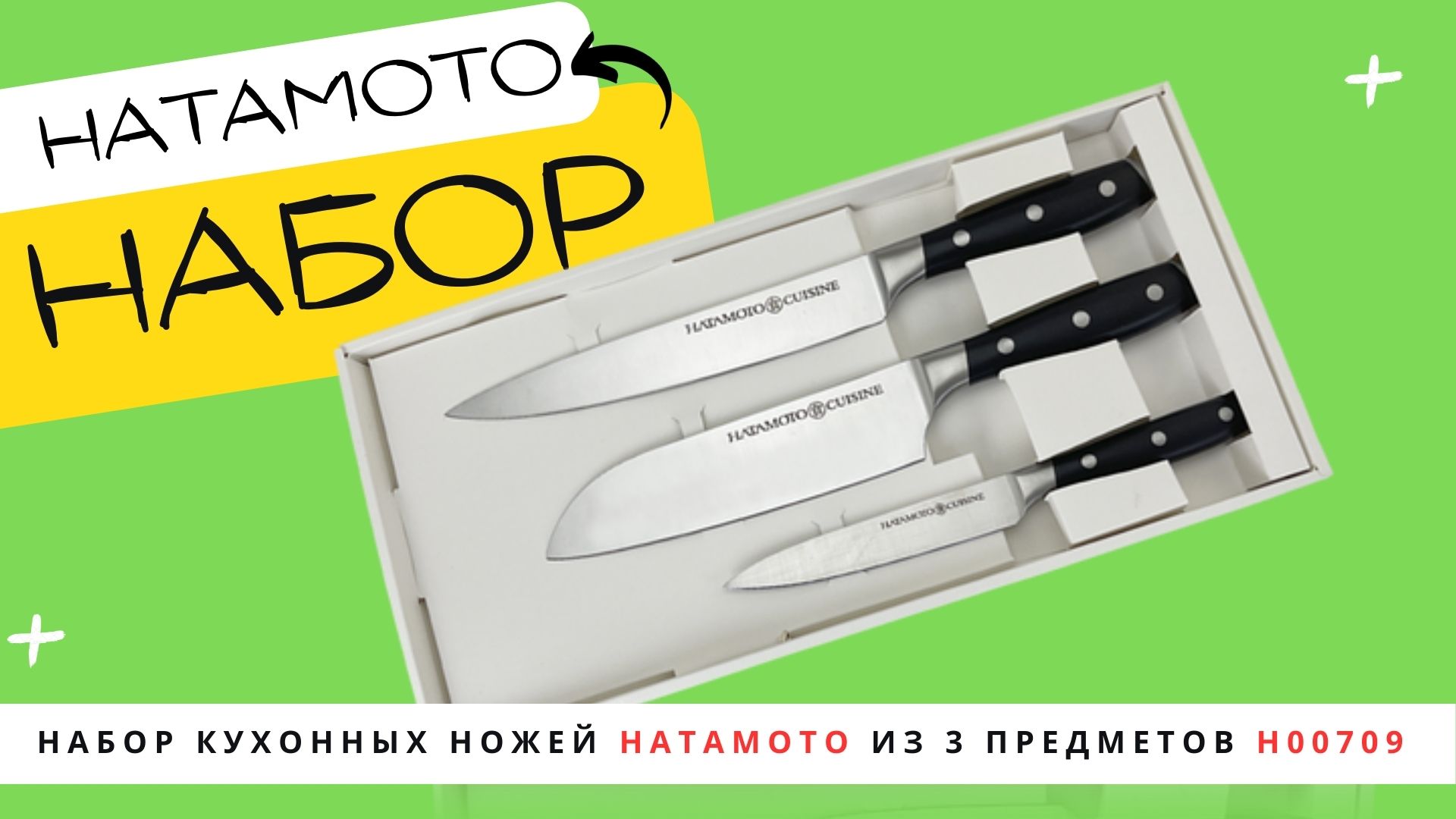 ? Набор кухонных ножей Hatamoto из 3 предметов (H00709), серия Cuisine. ? Сталь AUS-8, материал рукояти термопластик, заточка 8000# ? Ссылка на подставку в магазине Tojiro: https://www.tojiro.ru/catalog/podarochnye_nabory/nabory_nozhey/nabor_kukhonnykh_nozhey_hatamoto_iz_3_predmetov_h00709/?utm_source=socmedia&utm_medium=post&utm_campaign=link В состав набора ножей Hatamoto Cuisine входят: ? Универсальный нож для овощей и фруктов - длина клинка 125 мм, толщина обуха 1,8 мм ? Нож поварской слайсер - длина лезвия 200 мм, толщина обуха 2,0 мм ? Нож поварской Сантоку - длина лезвия 170 мм, толщина обуха 2,0 мм ? Клинки выполнены из стали AUS-8; легко правятся и хорошо держат заточку. ? Удобные рукояти классической формы выполнены из влагоустойчивого PVC. ? Модели нетребовательны к уходу и просты в обслуживании, рекомендуются для широкого круга как любителей, так и профессионалов. ? Непревзойдённое сочетание удобства, качества, цены и технологии изготовления клинка делает эти ножи уникальными по своим потребительским характеристикам.