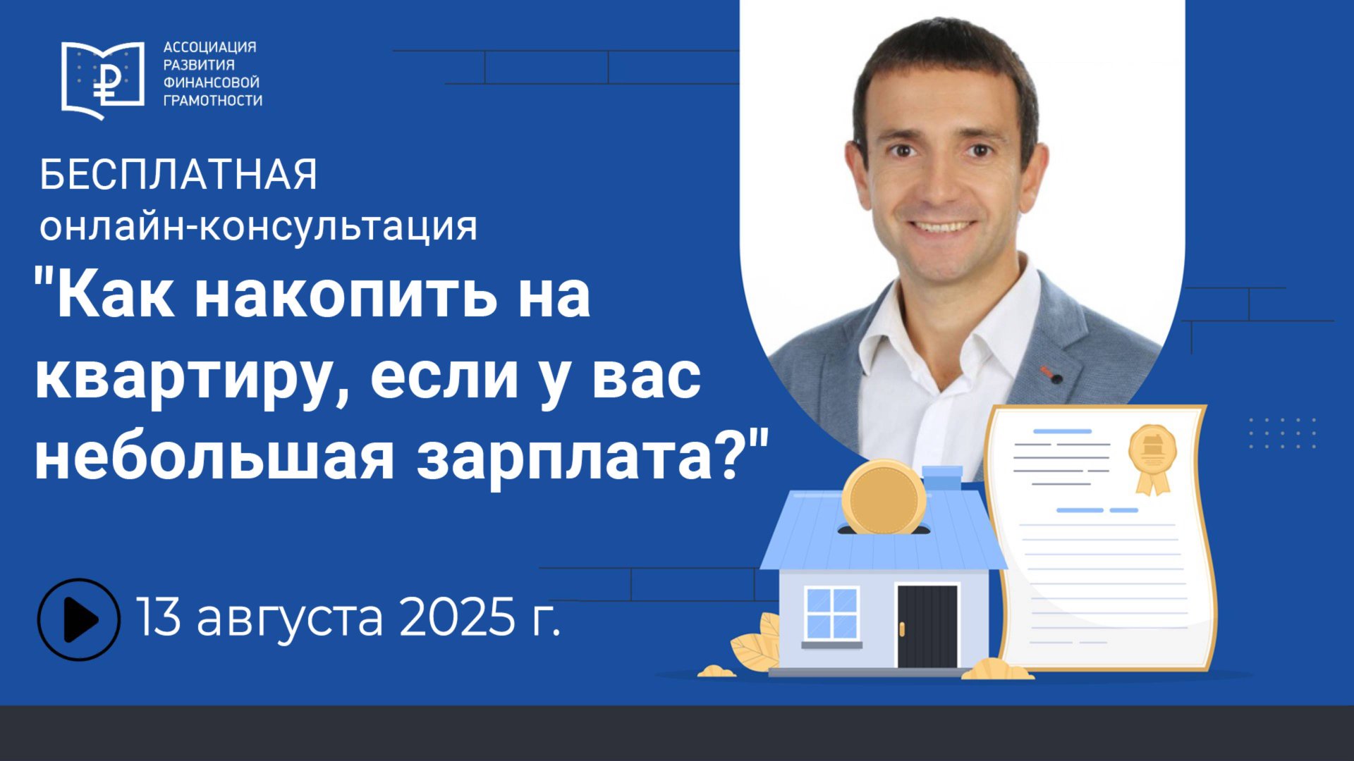В рамках просветительского проекта «Инвестиции в недвижимость» АРФГ БЕСПЛАТНО организует проведение онлайн-консультации: "Как накопить на квартиру, если у вас небольшая зарплата?" Кто проводит: Член Московского отделения Ассоциации юристов РФ, квалифицированный инвестор , куратор просветительского проекта АРФГ "Инвестиции в недвижимость" Константин Фаерман. Для кого: Для тех, кто мечтает о собственной квартире, но считает эту цель труднодостижимой из-за скромного дохода. Что разберём: ✔ Стратегии накопления – как откладывать даже при маленькой зарплате. ✔ Альтернативные источники дохода – куда инвестировать, чтобы приумножить сбережения. ✔ Личный финансовый план – пошаговый алгоритм для достижения цели. Почему стоит прийти? 🔹 Практические советы – без воды, только работающие методы. 🔹 Опыт эксперта – юрист и инвестор с реальными кейсами, который сам смог заработать на 16 объектов недвижимости 🔹 Ответы на ваши вопросы.