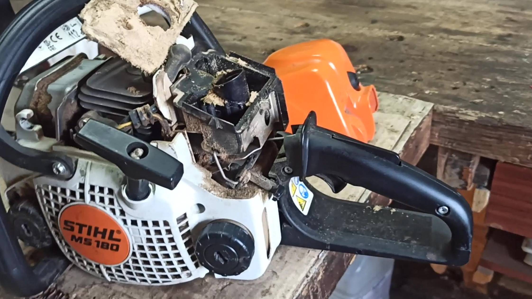 Вот до чего доводит несвоевременное проведение технического инструмента. Казалось бы, что там может зависеть от состояния воздушного фильтра? А нет... это очень ответственный и необходимый узел в конструкции бензопилы, на который, к стати, надо обращать внимание как можно чаще.