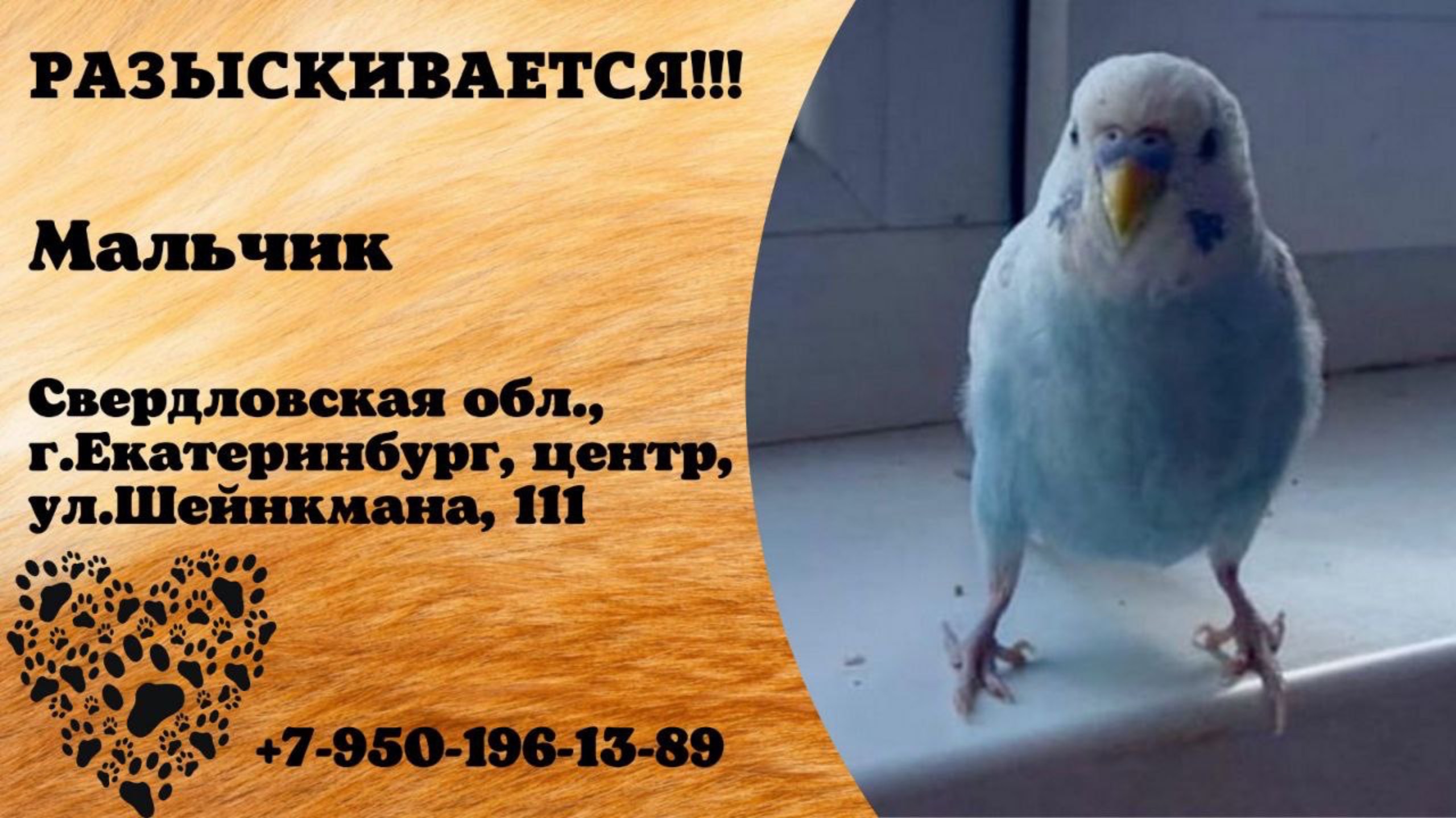 Пропал попугай! Мальчик. Свердловская обл., г.Екатеринбург.