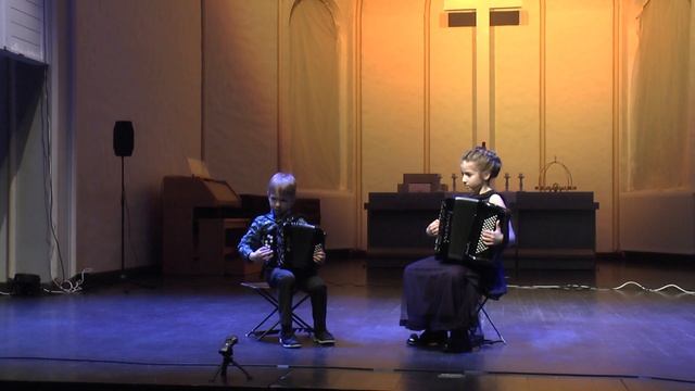 Исп. Александр Кузнецов 5 лет и Амалия Рыжкова 7 лет (преп. Рыжкова Т.В.); 17.04.2021, Яани Кирик, концерт "Василеостровские гармоники"