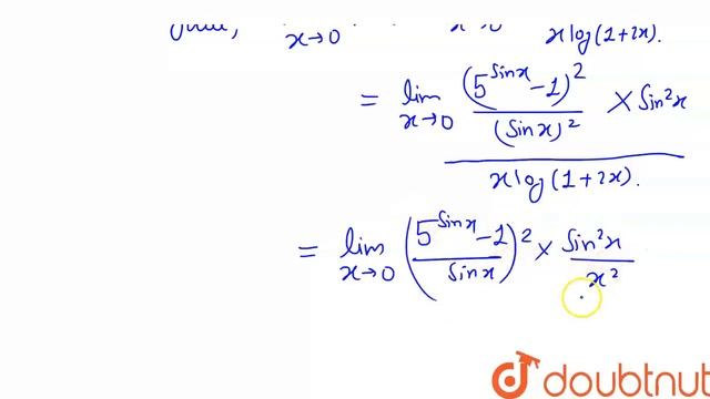It the function `f(x) = ((5^(sinx) - 1)^(2))/(x log (1 +2 x)) `for `x ne 0` is continous at x = 0 find f(0).