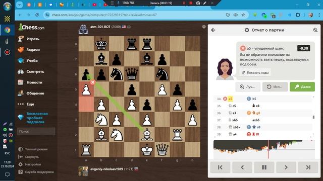 ШАХМАТЫ Сhess-com БОТ АТМ 2000 (23-10-2024)