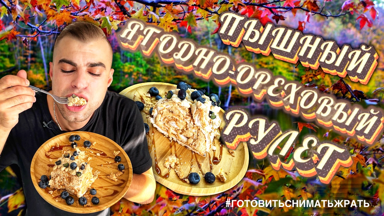 Пышный орехово-ягодный рулет / Lush nut and berry roll