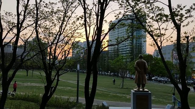 I took a short look at the evening scenery of Seodaejeon Park. Я взглянул на вечерний пейзаж парка Содэджон.
