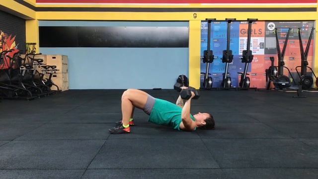 жим гантелей лежа на полу в мостике
