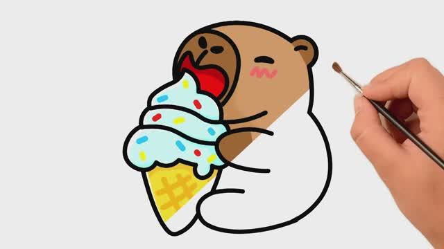 Как нарисовать капибару с мороженым легко и мило