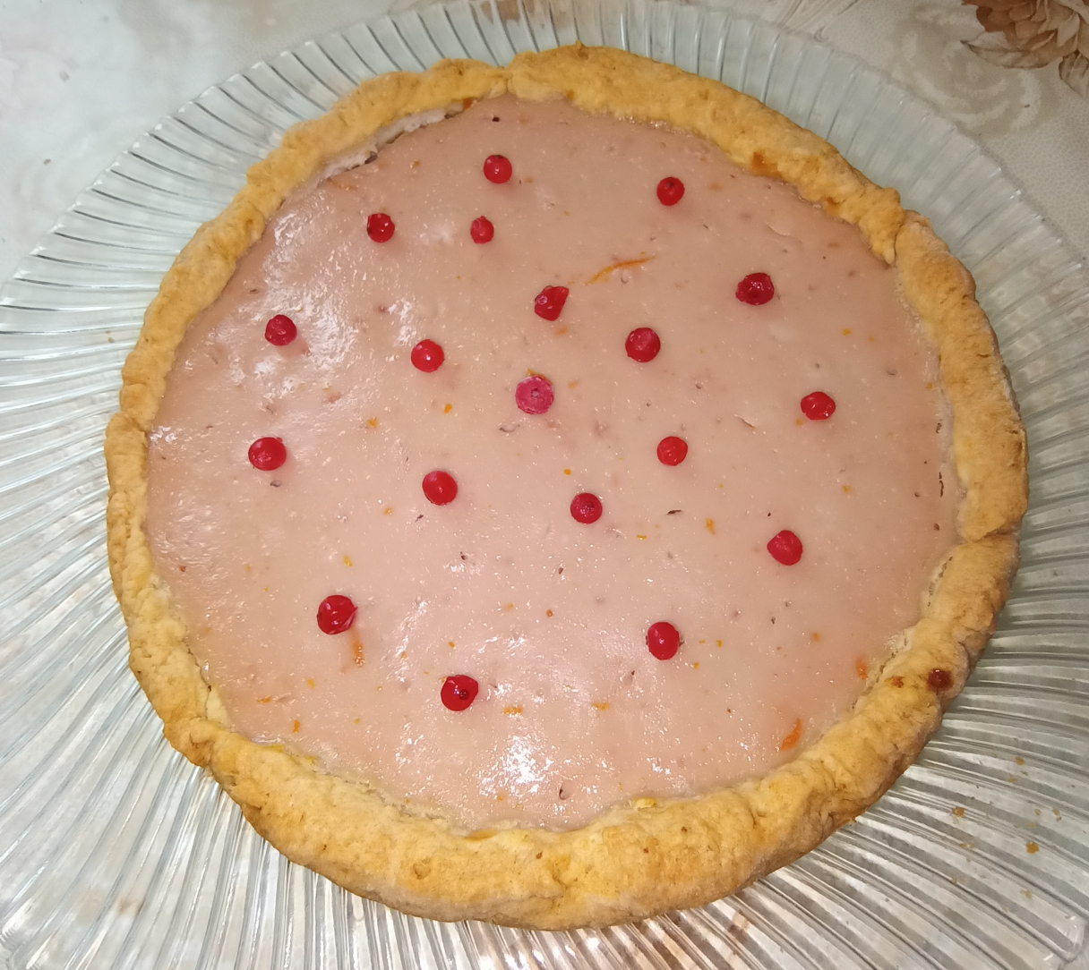 Песочный пирог с бананами и сметанной заливкой с джемом