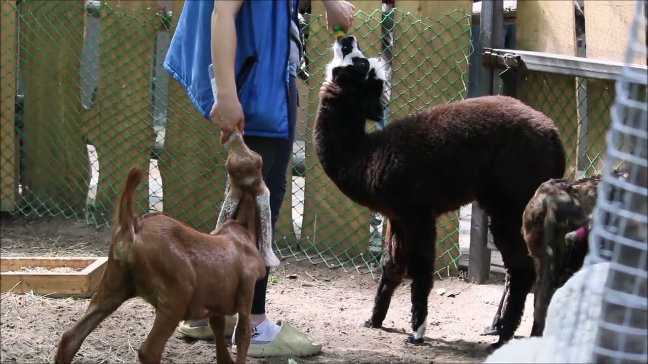 Малышка альпака и козлята пьют молоко из соски 13.06.2024