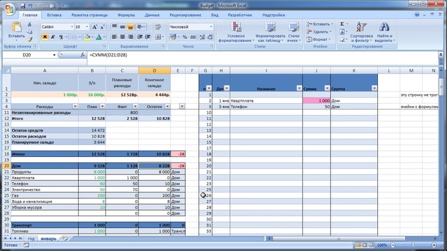 Семейный бюджет в Excel