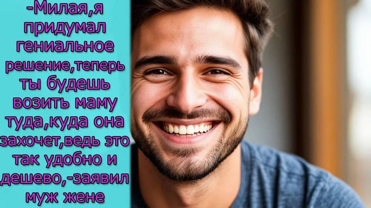 Милая, я придумал,теперь ты будешь возить маму туда, куда она захочет, ведь это так удобно и дешево