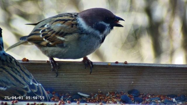 Воробьи в кормушке -