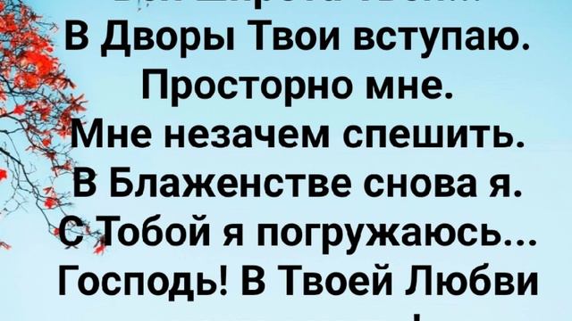 ХРИСТИАНСКИЕ ПЕСНИ ДЛЯ ХВАЛЫ И ПОКЛОНЕНИЯ ПРОСЛАВЛЕНИЯ #христианскиепесни#музыка#христианская_музыка#музика#бог#шансон#господь#христианскиестихи#музыкадлядуши#христианство#хвалы_и_поклонения#хваление#хвала#хвалы#иисус#иисусхристос#иисусмойбог#иисус_христос#иисусбог#иисусгосподь "ШИРОТА ТВОЯ" СЛОВА: ЖАННА ВОЛКОВА-ВАРЛАМОВА МУЗЫКА: ТАТЬЯНА ЯРМАШ ИСПОЛНЕНИЕ АРАНЖИРОВКА: https://vk.com/zakaz.p... Огооо( объемное звучание) Вся широта Небес... Лежит, как на ладони. Вся прелесть в Дыхании Твоём. Так что же есть... Та Истина...и где гармония? А в этом мире...суета и ложь. Припев: Святой...Святой! Источник Жизни! Что нужно мне...беру в Тебе. Иисус Христос...мой Бог. Ты - мой Создатель! Да будем Ты во мне... А я в Тебе!!! Вся широта Твоя... В Дворы Твои вступаю. Просторно мне. Мне незачем спешить. В Блаженстве снова я. С Тобой я погружаюсь... Господь! В Твоей Любви хочу я жить! Вся широта Твоя... В Дворы Твои вступаю. Просторно мне. Мне незачем спешить. В Блаженстве снова я. С Тобой я погружаюсь... Господь! В Твоей Любви хочу я жить! Припев: Святой...Святой! Источник Жизни! Что нужно мне...беру в Тебе. Иисус Христос...мой Бог. Ты - мой Создатель! Да будем Ты во мне... А я в Тебе!!! Огоооо (объемное звучание) Святой...Святой! Источник Жизни! Что нужно мне...беру в Тебе. Иисус Христос...мой Бог. Ты - мой Создатель! Да будем Ты во мне... А я в Тебе!!! Огоооо 03.11.2018 Жанна ВОЛКОВА-ВАРЛАМОВА