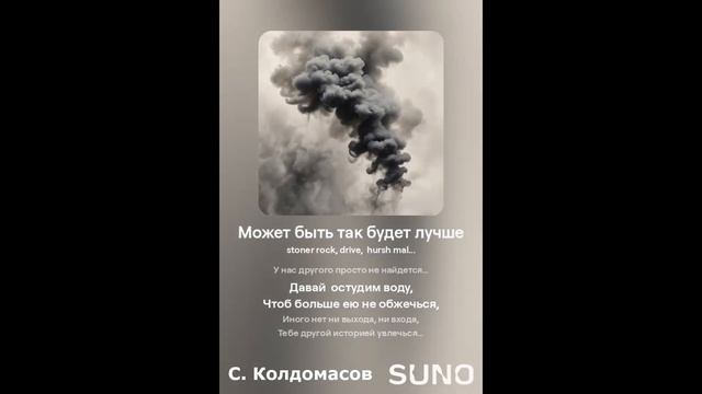 РОК Текст - С. Колдомасов Аудио и визуал - Suno AI Стихи: Сергей Колдомасов - "Может быть так будет лучше" (2021/09/04) (на сайте стихи.ру). Никакой вульгарщины или пропаганды, все совпадения чисто совпадения!