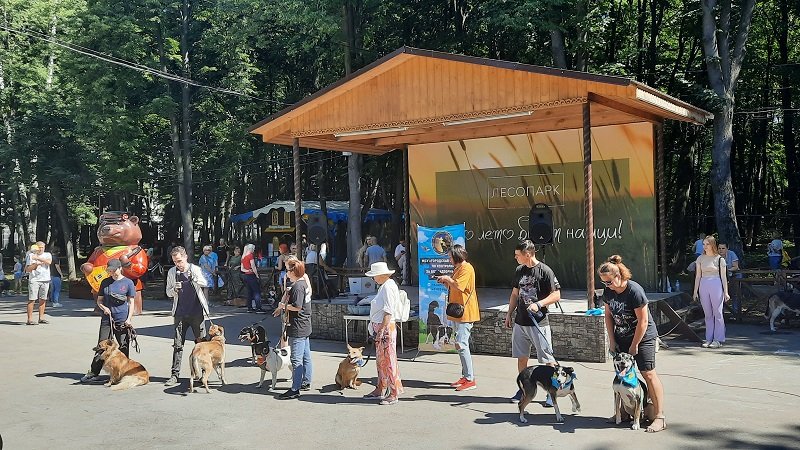 Прекрасная погода. Красивое место Лесопарк. Здесь проходит, на уже постоянной основе, выставка бездомных животных "Пойдём домой".