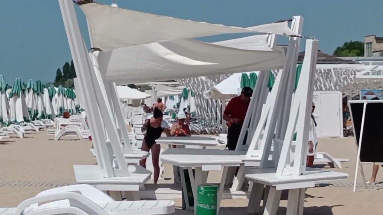 Пляж Лазурный Берег. В Евпатории продолжается отличная погода! Пятница 8 июля 2022. Крым.