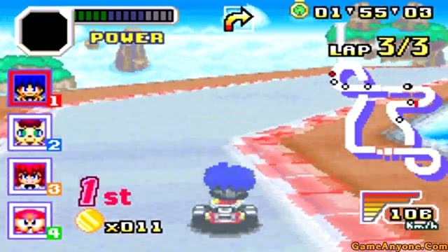 Visit http://www.gameanyone.com The # 1 Source For Video Game Walkthroughs Doing another quick walkthrough of Konami Krazy Racers for the GBA. This is a fun racing game that has gameplay similar to the Mario Kart series. In this game, you can play as many different Konami characters such as Goeman from the Mystical Ninja series, Cyborg Ninja from Metal Gear, Dracula from Castlevania, and more. This walkthrough will contain getting all gold trophies in each cup, passing the license tests, and showing how to unlock the 4 hidden characters.