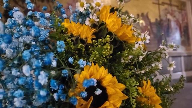 Наши цветы в Рождественский Сочельник в Кафоликон Храма Гроба Господня - на чин Освящения воды