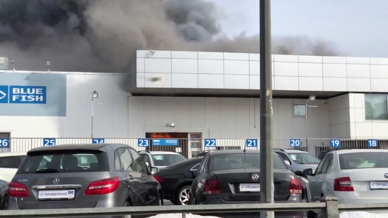 В Петербурге вспыхнул пожар в автосалоне на улице Савушкина, 103, где находится автосалоны "Лахта BlueFish" и "Hyundai Рольф Лахта". #питер #чп #огонь #пожар