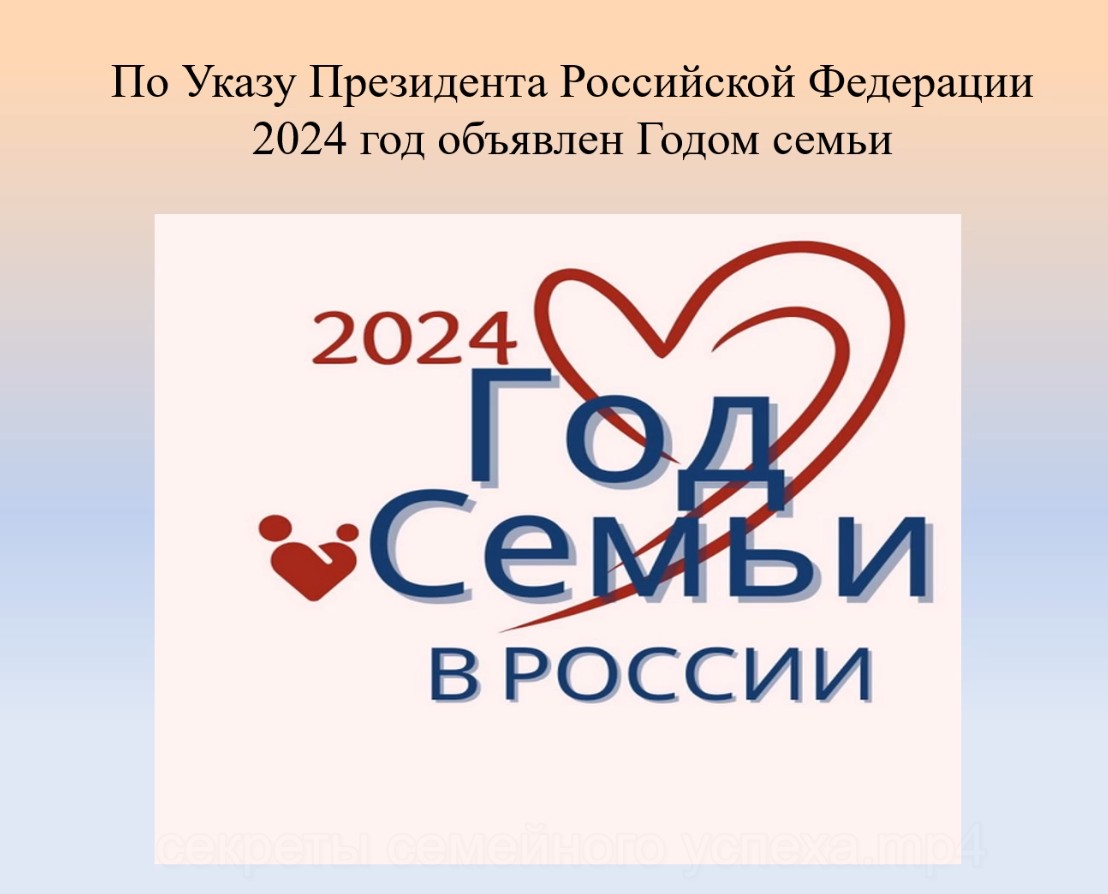 2024 год по Указу Президента Российской Федерации объявлен Годом семьи. Семья – это одна из самых важных и значимых составляющих нашей жизни. Она является основой общества и местом, где мы рождаемся, растем и получаем первые уроки о мире вокруг нас. Семья – это место, где мы учимся любить и быть любимыми, развиваем навыки общения и сотрудничества, узнаем о традициях и обычаях своего народа. В семье мы получаем основы морали, этики и нравственности, а также учимся решать конфликты и принимать решения.Семейные узы часто являются самыми крепкими и долговечными. Вместе мы проходим через радости и трудности жизни, поддерживаем друг друга и делимся своими достижениями и неудачами. Семья создает нам ощущение дома и безопасности. А каковы же секреты семейного успеха и счастья? Попробуем разобраться в этом сложном вопросе. Семейные отношения укрепляют праздники и традиции, совместные походы и прогулки, общие занятия и увлечения. Именно об этом идет речь в слайд-показе «Секреты семейного успеха». Подготовлено заведующим Гостагаевской детской сельской библиотекой-филиалом №5 Е.А.Яковлевой