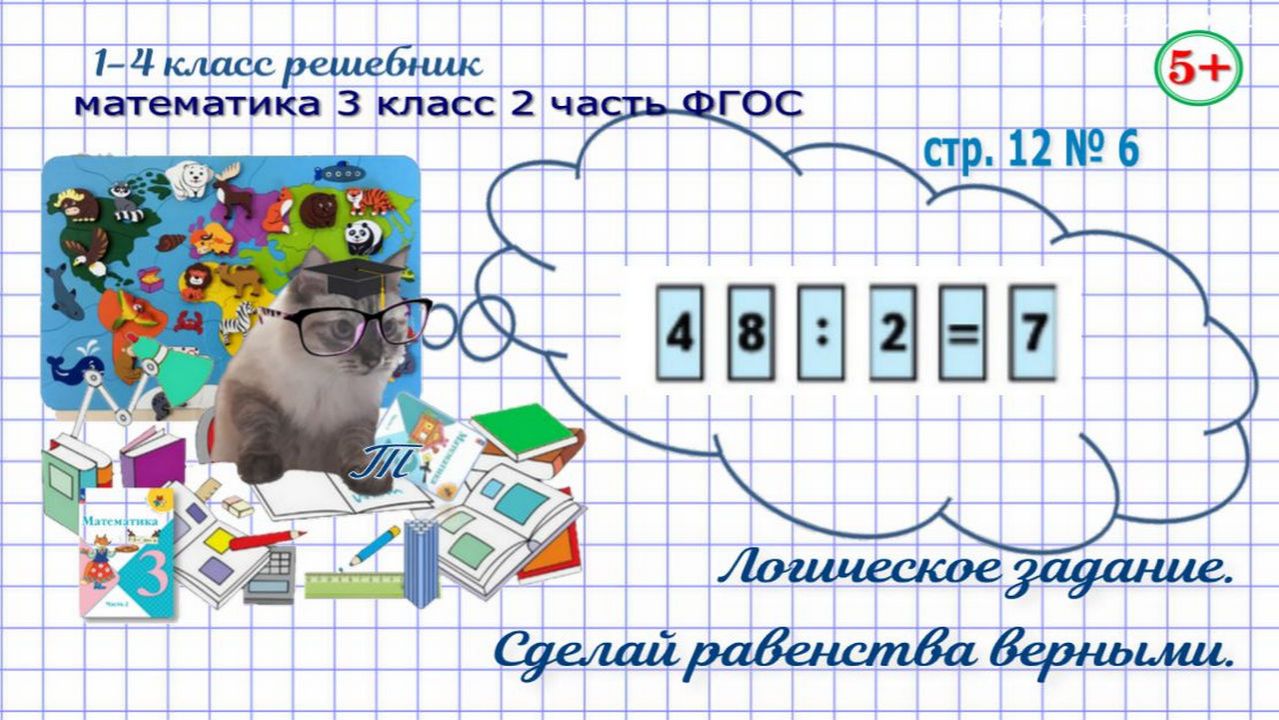 Страница 12 номер 6 математика 3 класс 2 часть Моро 2023 г ФГОС ГДЗ. Логическое задание. Сделай равенства верными. Обучение детей. Начальные классы. Если нашли ошибку, напишите, пожалуйста, в комментариях. Сайт с текстовым содержанием: https://dzen.ru/id/650204661aba9b0ba4b2643e #обучениематематике#математика3класс2частьстр12номер6#логика#логическоезадание#сделайравенстваверными#обучениедетей#математика3класс1частьФГОС#математика3кл1чФГОС#математика3класс1частьморо2023#длядетей#решебникматематика3класс#гдзматематика3класс#начальныеклассы#1-4классрешебник+