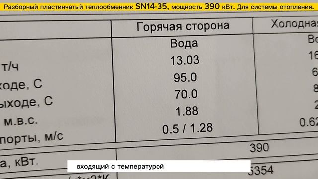 Теплообменник разборный пластинчатый SN14-35 -390 кВт для системы отопления здания 3900м2.