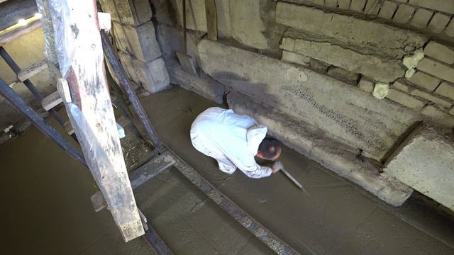 Заливка бетоном пола в подвале гаража.