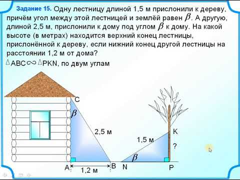 Одну лестницу длиной 1,5 м прислонили к дереву, причём угол между этой лестницей и землёй равен . А другую, длиной 2,5 м, прислонили к дому под углом к дому. На какой высоте (в метрах) находится верхний конец лестницы, прислонённой к дереву, если нижний конец другой лестницы на расстоянии 1,2 м от дома?