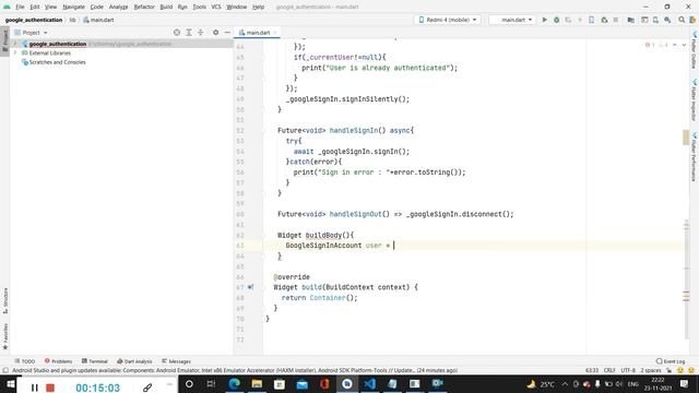 In this video, we're going to show you how to use Google Sign-in with Firebase in Flutter. Google Sign-in uses your existing Google account to sign you into Flutter apps. This is useful if you want to create a Flutter app that users can access from their Google account. We're also going to show you how to use Firebase in Flutter. Firebase is a platform that allows you to store data, manage authentication, and manage notifications. We'll also show you how to use Firebase to create a Google Sign-in authentication example. This is a great video if you want to learn more about Google Sign-in with Firebase in Flutter or if you want. Explore Premium LIVE and Online Courses : https://practice.geeksforgeeks.org/courses/ Follow us for more fun, knowledge, and resources: ? Download GeeksforGeeks' Official App: https://geeksforgeeksapp.page.link/gfg-app ? Twitter- https://twitter.com/geeksforgeeks ?? LinkedIn- https://www.linkedin.com/company/geeksforgeeks ? Instagram- https://www.instagram.com/geeks_for_geeks/?hl=en ? Telegram- https://t.me/s/geeksforgeeks_official Also, Subscribe if you haven't already! :) #GeeksforGeeks #Learntocode #GFG