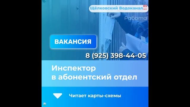 Инспектор - в абонентский отдел #щелковскийводоканал #щелково #работа #вакансия #shorts